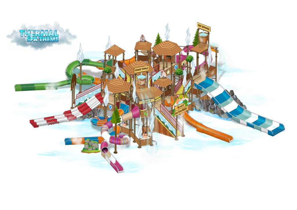 A thermal-themed attraction creates a spa-like retreat with heated pools, jacuzzis, and simulated hot springs. Drawing inspiration from natural geology, it uses rock features and steam to build a tranquil atmosphere. The focus is on gentle hydro-massage and relaxation rather than high-speed slides, offering a serene escape designed for soothing rejuvenation.